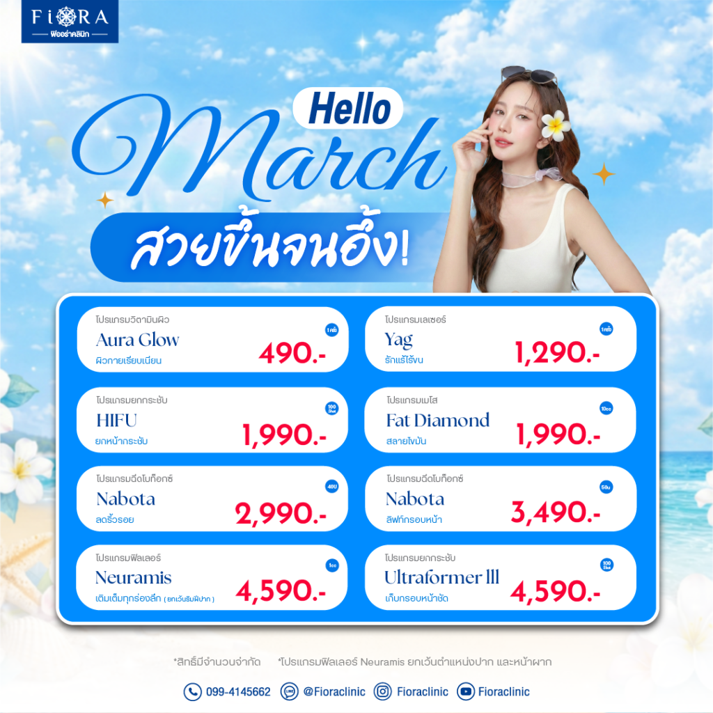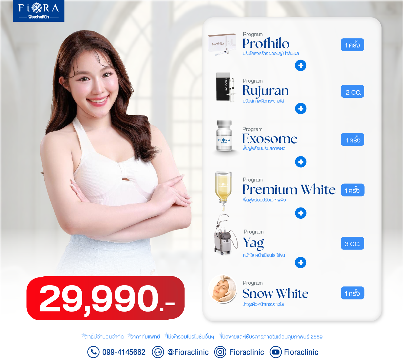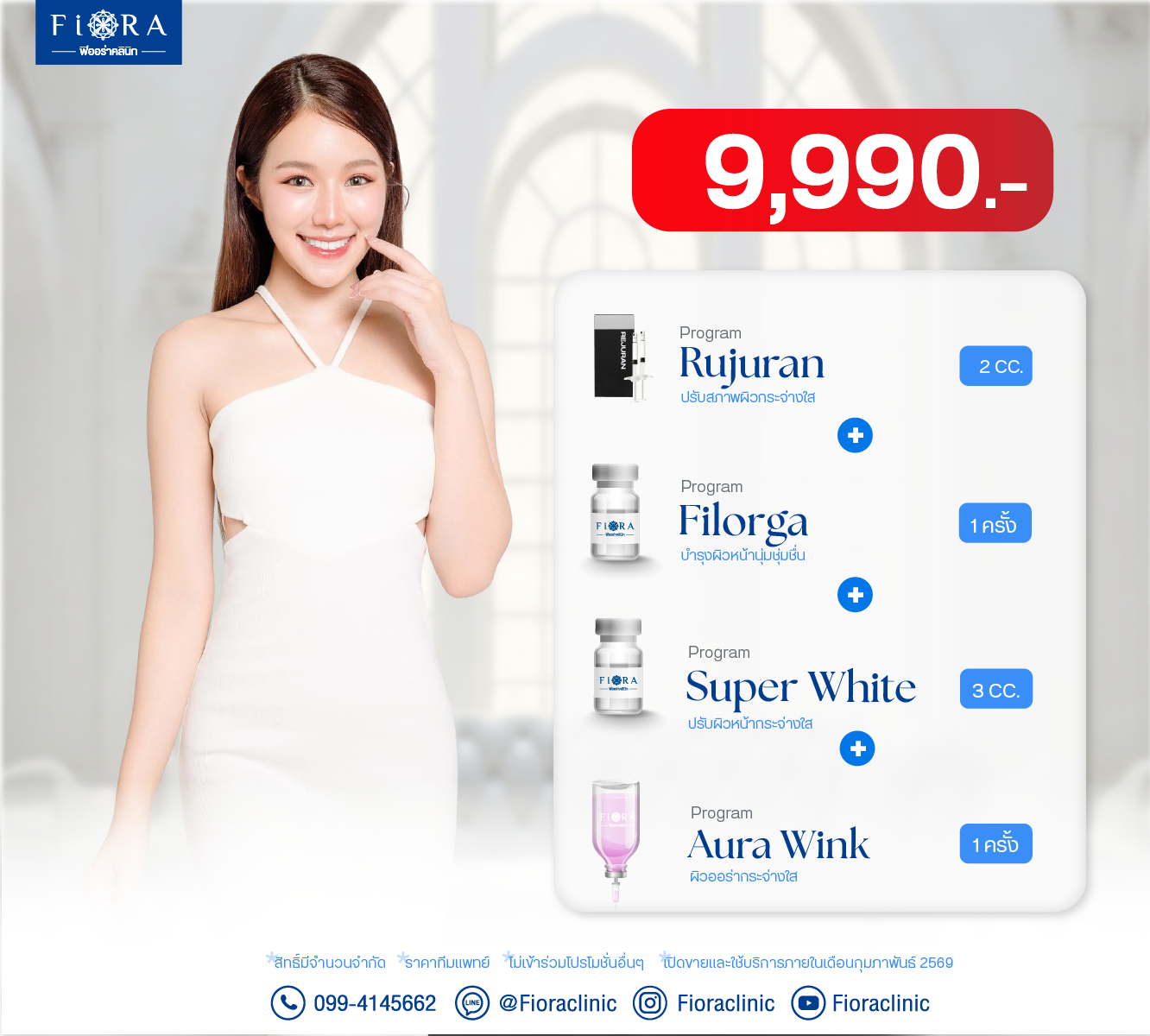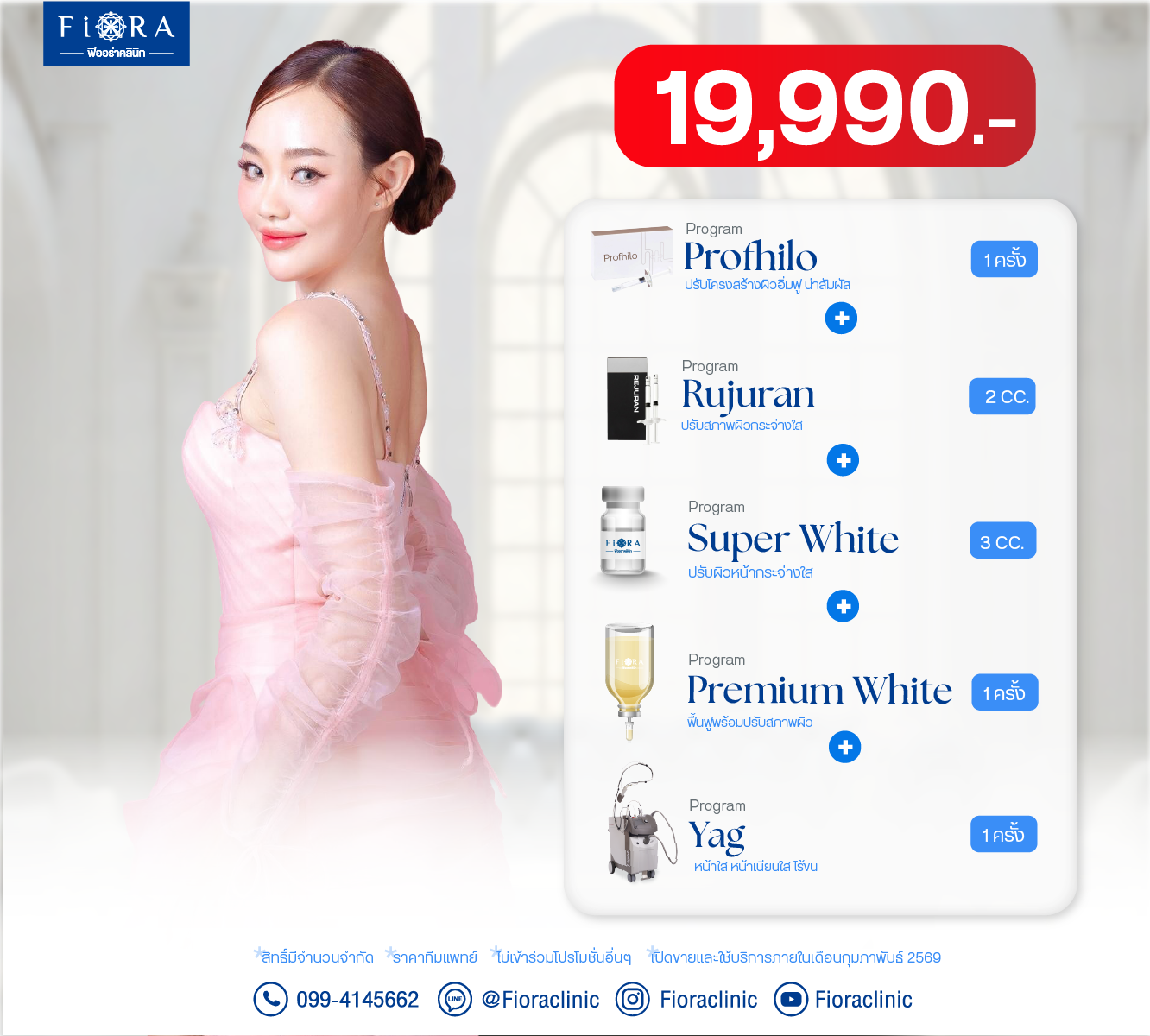 คลินิกเสริมความงามที่ให้บริการด้านความงามอย่างครอบคลุม ตั้งแต่การดูแลผิวพรรณ การปรับรูปหน้าด้วยหัตถการ “ฟิลเลอร์ ,Sculptra ,โบท็อกซ์ ,เมโสแฟต ,ร้อยไหม , IV DRIP ,Ulthera SPT ,Ultraformer lll หรือทรีทเม้นท์ดูแลผิวหน้า เป็นต้น” โดยมีแพทย์ผู้เชี่ยวชาญด้านผิวหนังและความงาม และมีเครื่องมือที่ทันสมัย เพื่อตอบสนองความต้องการของผู้ที่ต้องการดูแลตัวเองให้ดูดีขึ้นอย่างครบวงจร Fiora Clinic