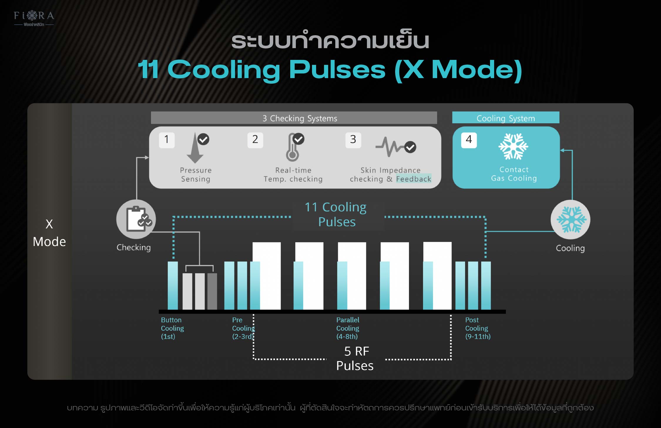 ขั้นตอนที่ 2: X Mode (Deep): โหมดพลังงานสูง (X Mode) ที่จะถูกปล่อยลงไป “ลึก” ถึงชั้นหนังแท้ส่วนลึกและชั้นไขมัน เพื่อเป้าหมายหลักในการหดตัวของคอลลาเจนและการสลายไขมัน