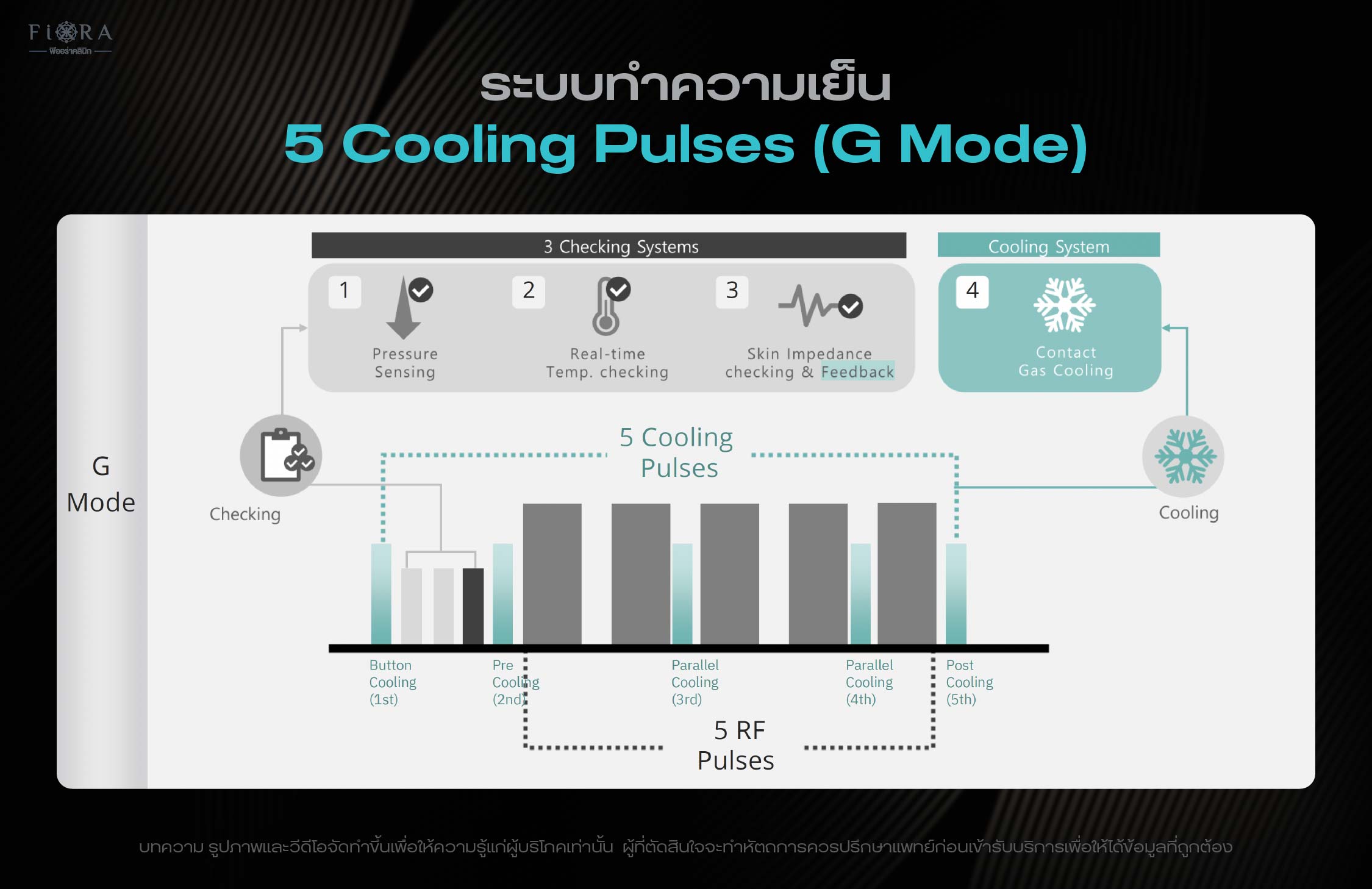 ขั้นตอนที่ 3: G Mode (Locking): กลับมาใช้ G-Mode อีกครั้ง เพื่อ “ล็อค” (Locking) พลังงานความร้อนที่สะสมไว้ใต้ผิว ทำให้กระบวนการกระตุ้นคอลลาเจน (Neocollagenesis) สามารถทำงานได้อย่างต่อเนื่องและยาวนานยิ่งขึ้น